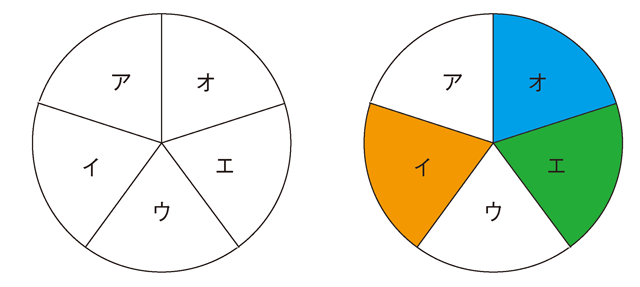 上の左図のように、円が5つのエリア(ア、イ、ウ、エ、オ)に分かれています。